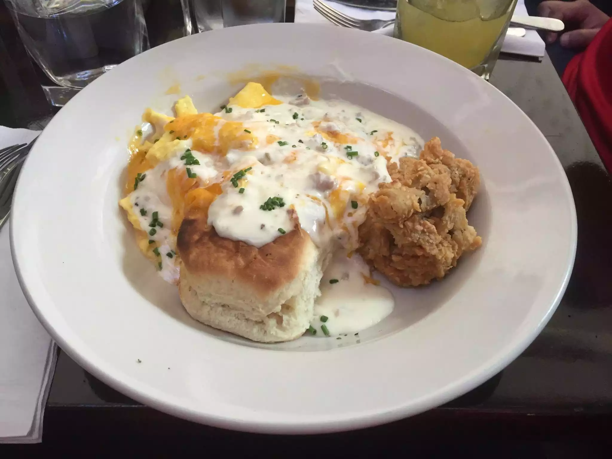The food is great, the drinks are strong, and the atmosphere is lively. Great place to have a drunk brunch on a weekend morning. We go about once a month and it never disappoints. The Mexican Matzoh Brei is my favorite, but the Manchego Mac-n-cheese is also wonderful. The Baked Ham and Eggs is also a favorite. I tried the Chicken Fried Steak once and didn't love it, but that was my first time trying chicken fried steak anywhere. The place can get very noisy, so be aware of that. Finally, you definitely should have reservations for weekend brunch; your wait will be significantly shorter.