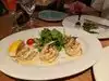 Food was awesome. Service was excellent..daughter had the lobster pasta. Wife had musaca . I had them lamb chops . All delicious. Picture is the appetizer.