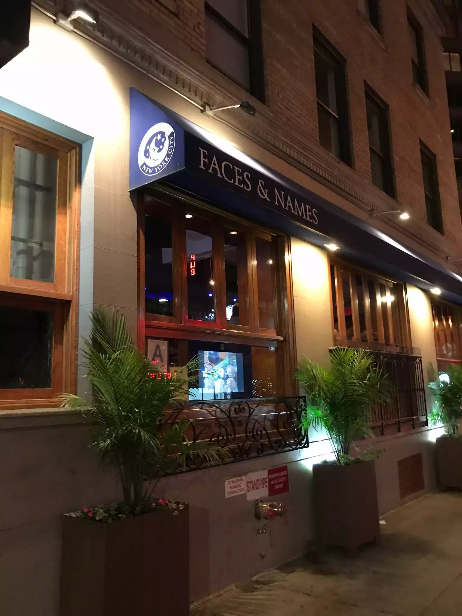 I have been to Faces & Names many, many times. It is my number one fallback in this hectic part of midtown, above Times Sq, but below Columbus Circle. It would be an excellent stop before or after a Broadway play or an event at Carnegie Hall. Basic drinks and a friendly atmosphere always. Best of all, they want you to enjoy yourself, so prices are below typical for the area. It's a bit hard to spot, just NE off 7th ave on 54st and above the fray and so it is mostly locals, but also a steady stream of visitors who have the good taste to find this midtown gem of a bar.