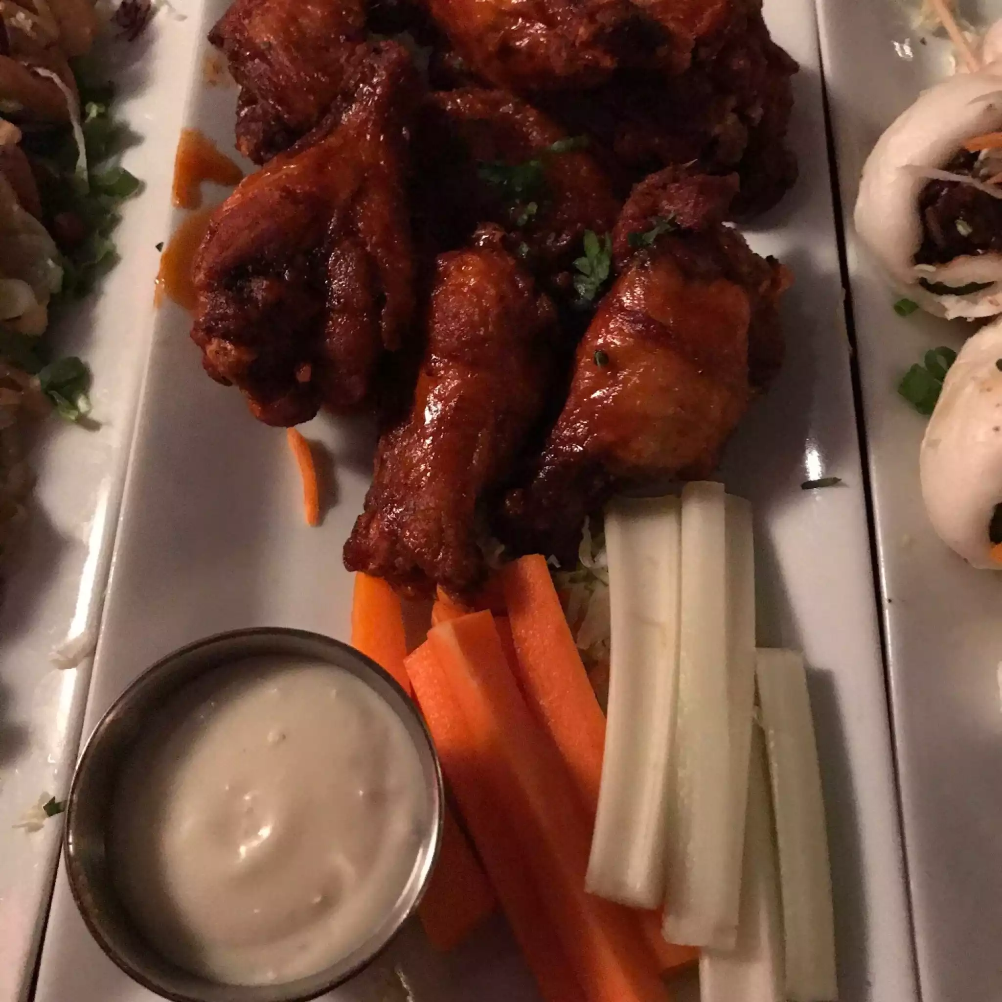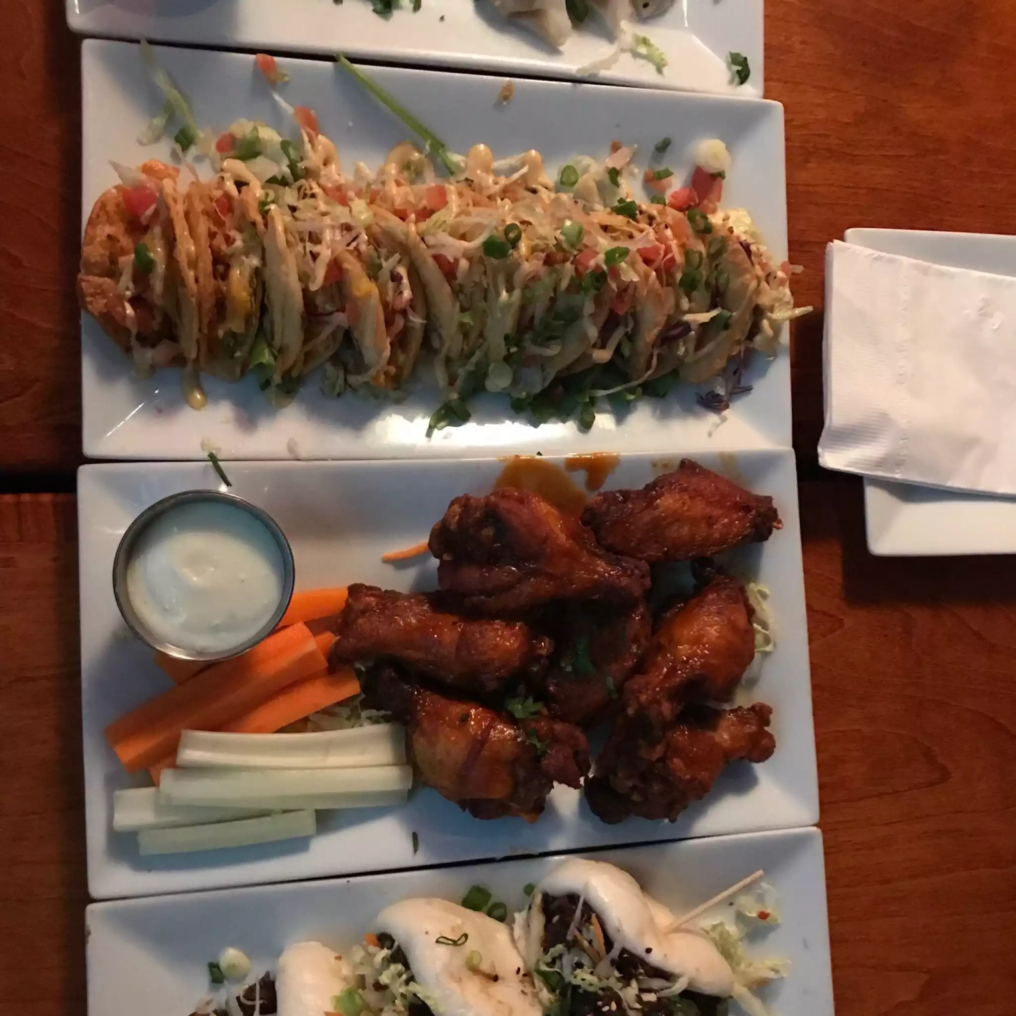Good food, service and atmosphere. Had the wings, pork sandwiches things and spring rolls and it was all scrummy. Not too loud and the service was great. Recommend this place.