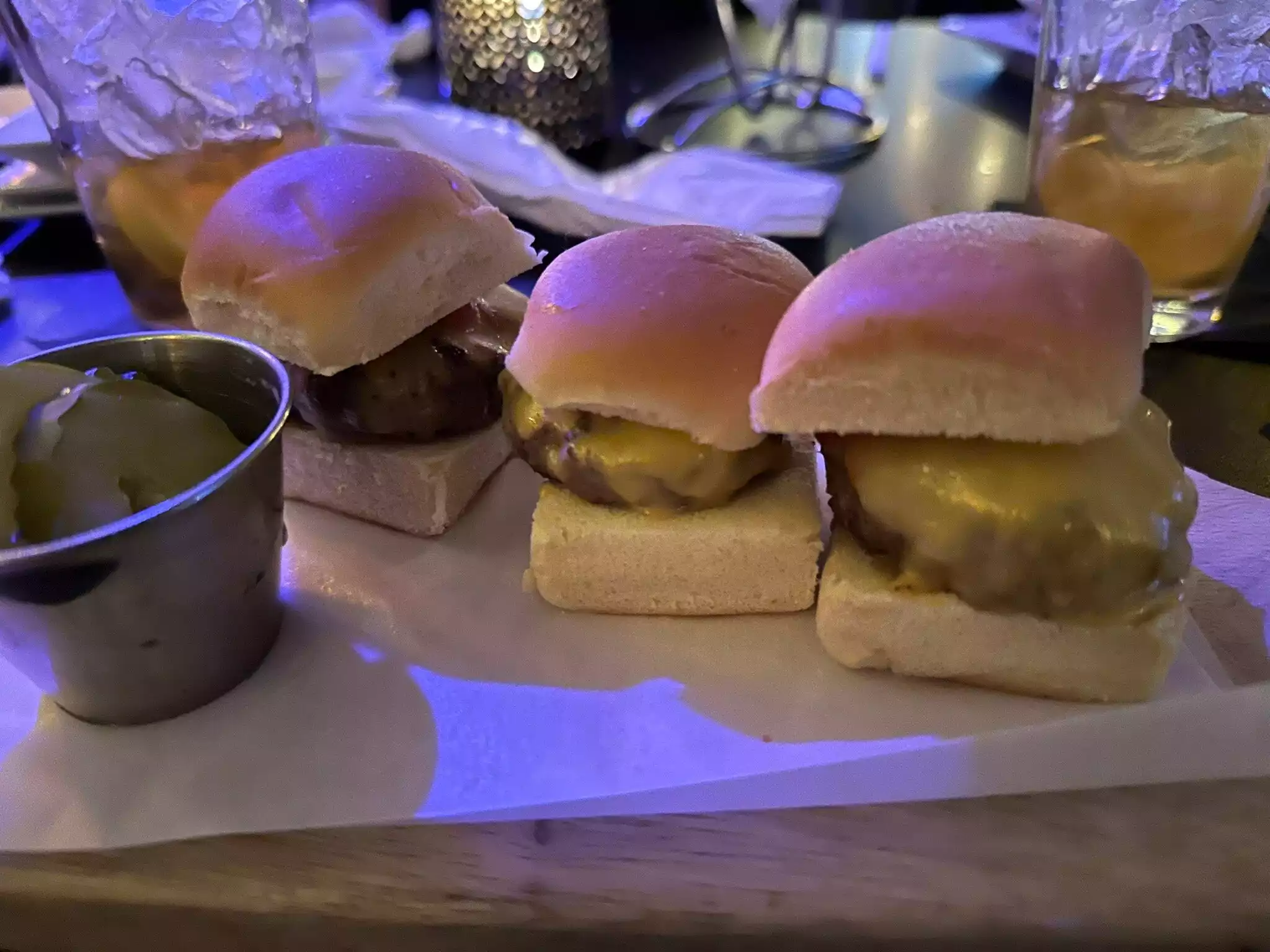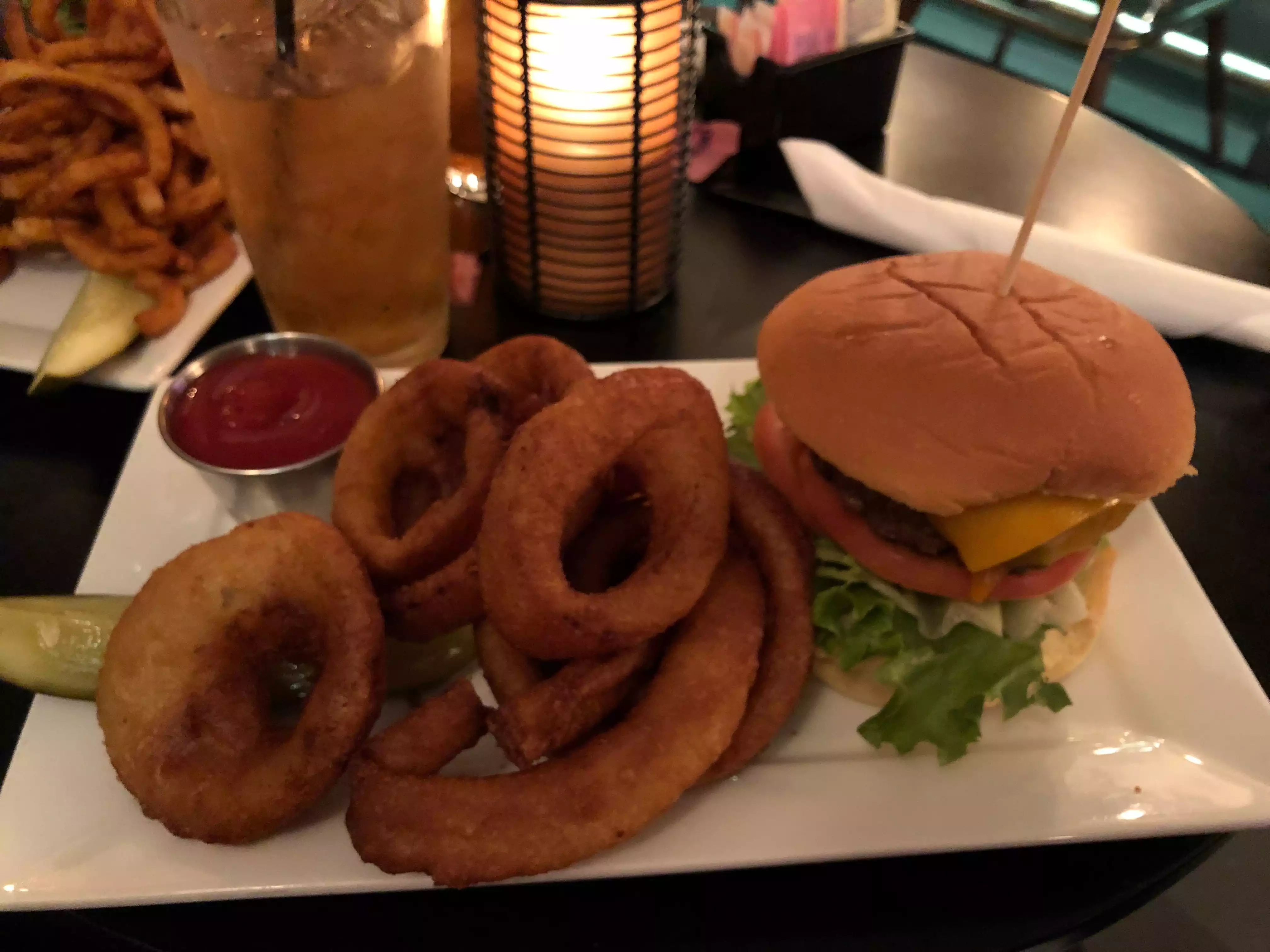 Staff were friendly, food was really good-we ordered the mini burgers, chicken and onion rings. Took a while for us to get our bill and we had plans. Would return!