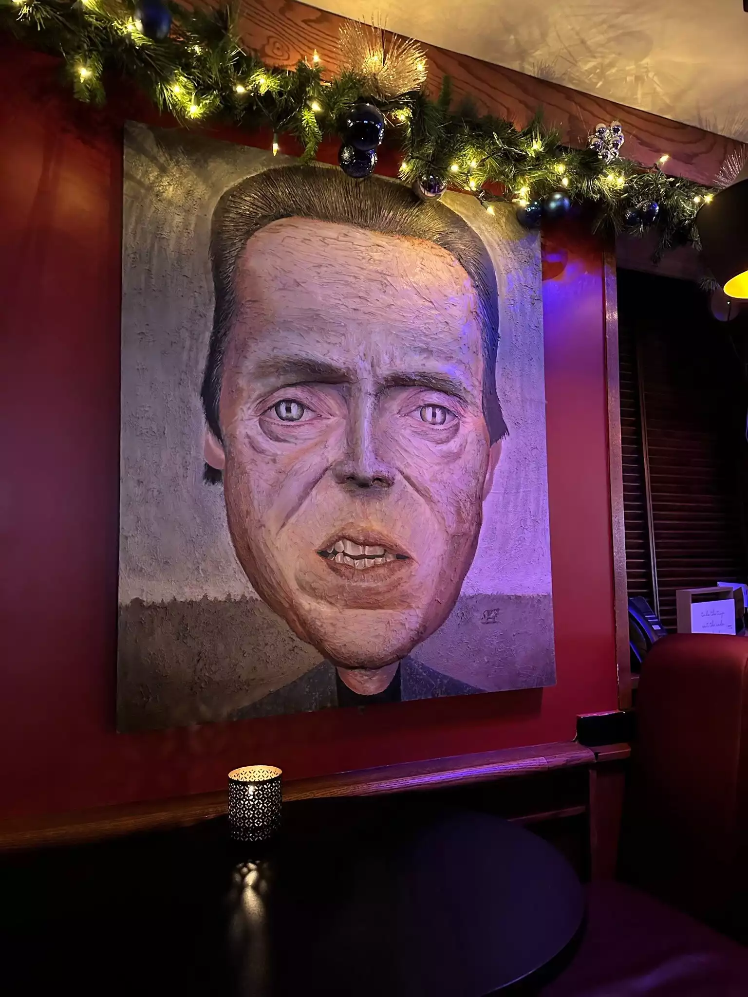 Went for a drink after dinner and ended up staying several hours. We expected a tourist trap and were pleasantly surprised to find a warm, relaxing place to enjoy some good cocktails and conversation. The drinks were done well, and when one of us spilled one unglamorously, the staff cheerfully came to clean it, and my companion up and then arrived with a new drink. We loved the music, which consisted of an array of more and less familiar Alternative bands of the 80s and 90s (think from Talking Heads to Siouxsie and the Banshees). The walls offered lots of conversation starters, as they are hung with paintings of famous people. To call them caricatures probably brings to mind Op-Ed cartoons, but these were actual paintings, seemingly very well done, and mostly very recognizable despite -- or perhaps because of -- the exaggerated features.