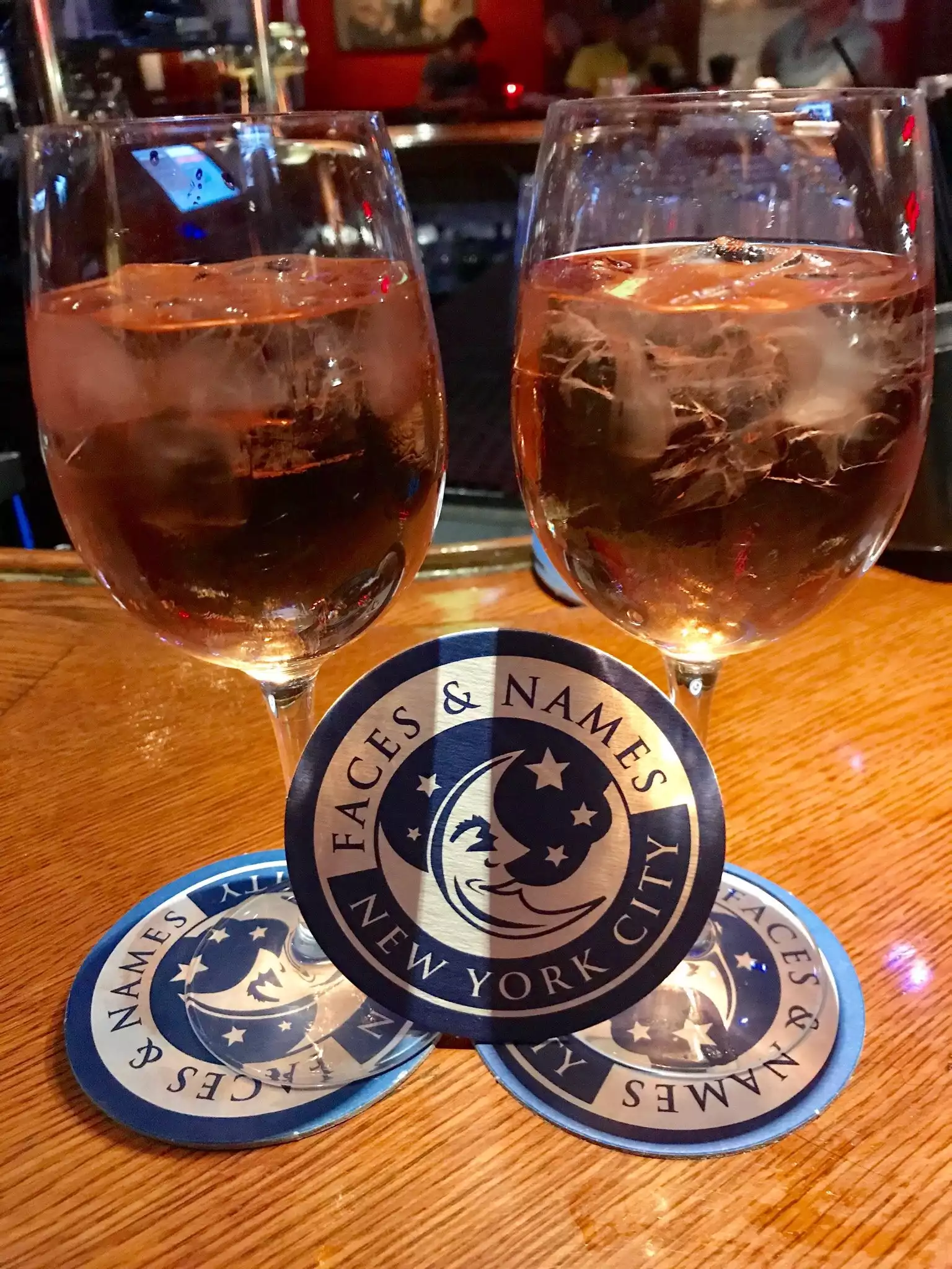 We were in NYC on the Friday before Christmas. It was cold and snowy and very busy. We tried to find a warm place to grab a drink before our dinner reservation but every place was understandably packed. We walked in to Faces and Names and a gentleman jumped up from his seat at the bar and offered it to my husband and I and said “Merry Christmas” while he finished his drink standing. It was a friendly local bar and we were so happy to be able sip our drinks in the warmth and Christmas lights. My husband noted that the bartender poured his Guinness perfectly.
