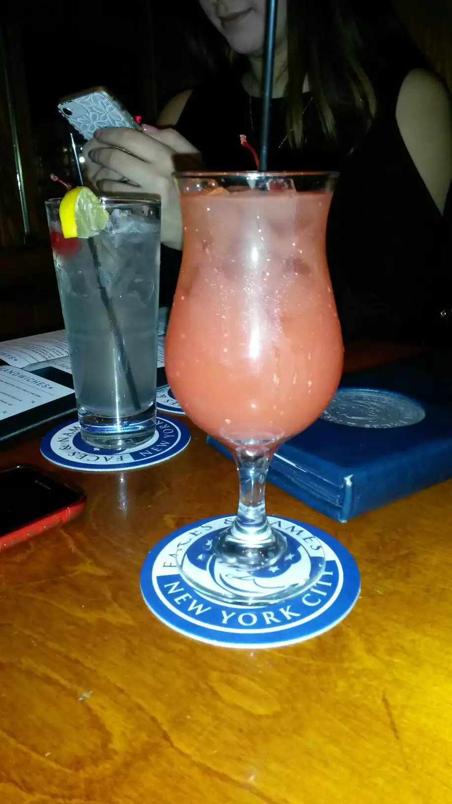 We visited Faces and Names for a quick drink before a show. Great spot!!! We were sat in the cozy back area at comfy sofas, had a friendly server and good cocktails. While we did not eat, we thought the food menu had a lot to offer and amazing prices for NYC. We certainly will come back again.