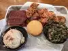 Had the beef brisket with 2 sides and cornbread. The sweet and zesty sauce is one of many that can be added to the brisket. It was excellent! The collard greens were just okay. The garlic, mashed red potatoes were excellent. Given the amount of food, I appreciated that the corn bread was a small muffin. This is conveniently located and the menu is extensive!