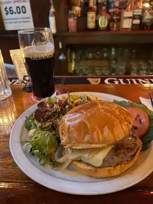 Excellent burger, properly cooked and served with salad. Fries or tots are the other side choices. Good selection of beer and of course they can pour a proper Guinness. The service was excellent and they made sure I was happy with food and drink. Pub atmosphere is typical albeit a bit loud at times depending on the crowd. Live music later in the evening is upstairs. The neighborhood is bustling with several pub options but this one is comfortable, friendly, and good value.