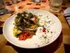 No regrets! Everything was very good. We had the meatballs for an appetizer and they were spicy. Also had a wedge salad, which was very interesting, a flat wedge with whipped blue cheese with crème fraîche. One of us had a giant prawns for dinner, and these were very flavorful with a curry and fragrant rice. The other had the whole grilled branzino. Wine was very good. The cocktails were good. Dessert was the strawberry pepper Panna cotta. I would definitely get this dessert again. Everything was already gluten-free so I didn’t even have to ask for that. Our server was very efficient. As a bonus, the chef came out and checked on us.
