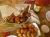 bit disappointed really. Didn't at all like the jerk wings and the boneless chicken wasn't particularly nice either. The chicken Coating seemed very vinegary. Still fries were okay and my husbands buffalo wings in BBQ sauce were good. Me and my friends tho not so keen. The beer had bits floating in it? Expensive for what it was