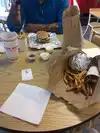 great burgers and a full bag of fries ! we really enjoyed this family event. you choose a burger and you add averything you like : a kind of tailor made burger
