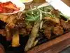 I ordered a meal called "fire chicken" where a great big sizzling plate of chicken filets is brought to your table and the filets are cut up into bite-size pieces by the waiter. There are various side dishes which are brought before the main course consisting mostly of cold vegetable appetizers. The chicken comes with rice and is excellent.