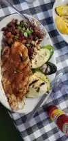 Pictured is the snappy grilled trout. First time here, lots of parking near by in the ramp. 3 different seating options, outside on the sidewalk, inside with large open windows, and inside inside. Seat yourself. There are tons of things all over the walls and ceiling to look at while you are there (cheap entertainment). The food comes quick, and it is very good. The beans and rice were wonderful! The geilled zucchini and squash were perfect, not to mention the fish! Don't think twice about coming here, just go.