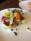 Really beautiful presentation. Halibut was deliciously arranged on corn with the sweetness of tomatoes...just delicious. Chicken was also a beautiful presentation. Risotto with shrimp worth sharing for an appetizer. Other salads were delicious and can also be shared. Nice bar to eat at, also. Owner, Ellen, present and watches over everything. They were tuning a bit late due to the rainy weather and she was very concerned about our comfort. She sent us some extra salads and an appetizer since we had waited for our reservation and were hungry. Very nice of her. Try this restaurant.