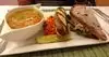 We ordered the salmon burger, lasagna, fruit with yogurt, carrot soup and chicken noodle soup. They have delicious yogurt flavors. Peanut butter, coffee, chocolate, and plain which is tart, were today's flavors. Yum, Yum. Add toppings and it's wonderful. The food and soups were very good.