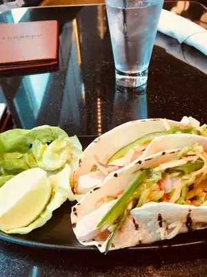 Went for dinner and lunch. Had the halibut over butternut squash risotto and was very tasty so ordered it both times. Unfortunately the lunch serving was quite over done, with some char on it and tough over cooked fish consistency. Should’ve sent it back but didn’t have time. Definitely should’ve done right for a $33 dish. Colleague ordered the guacamole and salsa, which was rather skimpy and she didn’t like it, although I thought it was ok, and both agreed the plantain chips were great, although the standard chips were very underwhelming.