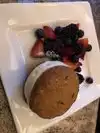 We had the cold breakfast meal option with our room and received vouchers for each person for each day. If you opted to take any hot selections, you were charged an additional $9 each. The cold option had a variety of pastries, fruits (cantaloupe, melon, blueberries, black raspberries, bananas, pineapple chunks.) and sliced deli meat which varied each day. They also offered cereal, yogurt cups, nuts, granola, toast, bagels. Staff was quick to seat you as tables were cleared.