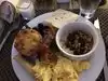 So while eating I thought it was fine. Right in line with your average free continental breakfast at any hotel chain. Then I got the bill $145 for 3 of us. Seriously $35 for powdered eggs that taste horrible? If you’re charging those rates at the very least put in an omelette bar. Service was seriously lacking as well. Couldn’t get a drink.