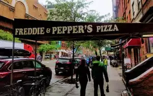 My wife and I traveled to NYC this month and stayed on the upper west side near 75th and Broadway. We found Freddie and Peppers as we were walking in the neighborhood on Amsterdam street the first night and by the time our 9 day trip was over we had been there at least five or six nights! While the restaurant is small and very very busy, we found a table nearly every time quickly and the pizza is to die for! We had the Ham and Pineapple, Cheese, and Mushroom most and each time seemed better than the first!!! The people were friendly and good even though they must be so stressed with the amount of work they are doing. You will be so happy you have found this place!!!
