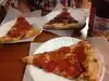 Very good pizza and sympathetic staff in a small restaurant. Best to buy first one slice and then another, because they are larger than they seem.