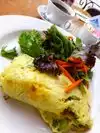 The front facade is blocked by scaffolding but don’t let that deter you. The stuffed croissant with egg and cheese was perfect. You could add a breakfast meat if desired. The value in such a charming place will be hard to beat. My entree was $16. I chose a side salad. It was simple and refreshing. The service was quick and met every need. Make a reservation as it’s very busy particularly during weekend brunch.