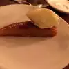 Obviously, Frenchette had good and bad days judging by the reviews. The night we went I was frankly underwhelmed. The outside façade was clean and appealing, the inside was a bit bare bone. More what I would expect from an inexpensive diner, which Frenchette is not. We arrived early on Friday, so the noise wasn’t bad as mentioned although our server advised us to stay in the bar area if noise bothered us. Do not assume it was quiet, but it wasn’t at the ear bleeding decibels previous reviews mentioned. The highlight of our meal was Paige, our server. She managed to be informative, friendly, and efficient. She guided us through appropriate wines for our meal, too. We started with a rabbit pate on toast points with a prune accent. Intriguing combination that was good, but not excellent. Husband and daughter ordered lamb, which was a decent portion and enjoyed it. I ordered calf liver, which sometimes can be the mark of an inattentive chef because most overcook it. The garnishes for the liver worked. The liver itself was too salty and swam in butter, but it was tender. Our sides included marrow and charred carrots. These were very uninspired sides to put it mildly. The marrow, which we have enjoyed at several different restaurants was a slimy onion-flavored strip here that floated on butter, which we bore no resemblance to previous marrow we had had. The carrots didn’t fare much better. At this point, I noticed we had no bread, which my daughter pointed out we had to order and pay an extra eight dollars for. Despite traveling around the world, I have never been to restaurant that didn’t have a house bread. Some might charge for specialty breads, but never plain bread itself. We moved on to dessert, which I had high hopes for since who messes up dessert? The dessert name was in French, but I am convinced it said hard, dried-up brownie with a tiny scoop of flavorless ice cream with a cut-up fig. The fig was the best part. My husband had poached peach and my daughter had Cornmeal Baba, which had to be much butter than what I had. The saving grace of the meal for me was the lavender mint tea. I wasn’t offered any honey, lemon, or milk with it. When I asked, I was given a small container crammed with sugar packets. That gave it a real diner vibe. A simple meal is about hundred dollars per person. Don’t expect personal space because the people are crammed into the place.