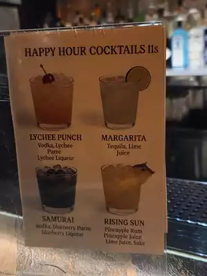 Very good food, with very fast service, we went before going to the theater and we were treated very quickly, although we ate without hurry, the joke is that they do not take long to bring you food. We tried the edamames spicy, the hamachi sashimi that is delicious and then one roll each. The bar was on its happy hour and although we didn't go in, it looked excellent atmosphere