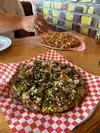 We had the paneer tikka pizza, and it was fabulous! Just the right amount of heat (mild to medium). The flavors were sooo....good and the crust was delicious. We are going to order a different vegetarian pizza each time we go there and decide which is our favorite. Service was very friendly, and the Indian beer was good. We're so happy this restaurant opened in our neighborhood! Go there now if you like pizza and Indian flavors!!