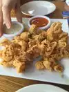 We thought the venue was fantastic; the big clock and the pictures of the clock and the queen and all of the flags gave the whole place a very warm and comforting feeling. Service was also good, and cleanliness was very good. We ate out doors in a lovely summer afternoon, which was very pleasant, in many respects because there was very little vehicular traffic on the street. However, although the beer was cold and quite good, the rose was undrinkable and the calamari was almost all breading, terribly over cooked and the bit of seafood that one could find was very much like rubber bands. There may be better food on the menu to match the surroundings but we sure didn't find it today.