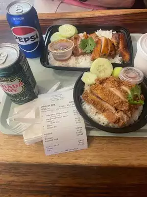 Nothing fancy, good food, great price. Always love the Hainanese Chickens, a salty steam chicken.Yhis place sells the chicken with garlic rice for either 6.50 or 9.50. A broth comes with the large order. The chicken was very tender and tasty, they give you a sauce that's hard to describe , but it was very good. My friend have the roasted chicken and it look really good. It's a quick eat and dash place, no decor or what's so ever, just some self seated tables. The staff was very friendly.