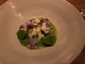 Flynn McGarry deserves all of the accolades he receives. Besides being incredibly talented, I appreciated his warmth and his in-person care for his restaurant. Every single person on staff was positive and kind; which added to the beautiful atmosphere. I could gush about the ambiance: Minimalist and cool without being cold. This tasting menu was a culinary adventure from start to finish. Definitely go for the wine pairing as each flavor was highlighted by a sip of the appropriate wine. I think Gem would please any palate and nothing on the menu was too weird or challenging for a simple eater. I would characterize my palate as sophisticated and the flavors on McGarry's menu were complex and interesting. It was delicious and filling. Seasoned to perfection. I am excited to share this Gem with my friends.