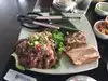 The restaurant offers a unique assortment of Korean appetizers and barbecue the meat on your table. The food is tasty and unique and offers a nice experience. I guess that is why they prices are high. The meal could take some time since you start with the large number of small appetizer dishes then they bring the raw meat to be cooked in front of you. Some meat cuts could include unchewable fat ...they do not trim it carefully. Some meat comes wrapped around the bone ribs which is basically a waste of cooking...since no one will eat bones or the tough meat around the bones. This makes some parts of the meat non tender. It’s a nice experience but l wish they could do a better job trimming the fat/undesirable parts of the meat specially for the high prices they charge.