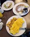The waffles looked really good. Omelette was overcooked and dried out. Home fries were lacking seasoning and also dry. Service was super slow. Waited about 20 minutes to get the check. Overpriced breakfast food.
