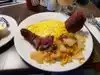 If you are looking for a typical American Brekfast with Eggs and sausage or Bacon and Ham, this is your place. Very typical American brekfast, portions are huge and service is good and fast. You can exchange your sausage and bacon with Turkey options if you are more health conscious