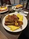 Me and a my family are visiting downtown for a few days and we came across this restaurant for breakfast. Great hostess for seating us right away and the waiter was extremely nice and gave us a lot of option for the food. I had the Waffle with bacon and scrambled and the others order breakfast platters as well. The food was amazing and their coffee hits right at home. Great food overall, will come back definitely.