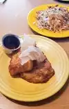 Great food, service, clean, glad that the waitress strongly suggested we try a one piece of French toast as it was our first time,. I had CFS and eggs...outstanding. My wife had pancakes...wonderful. We shared a piece of French toast and YES!!! our waitress was right, thank you, we will be back soon.
