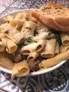 We got takeout and split the Scarpiello chicken and Diavola pasta between the 2 of us. One meat and one side was more than enought to split for 2. The chicken was very tender and travelled well. Sometimes baked chicken doesn't work out well for takeout in my experience, but this was very tasty. The pasta was spicy and went very well with the chicken. We will be going back soon to try other dishes.