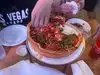 Skip it... Sad place that a decent world class destinatoon does not need. A tourist trap in my opinion. Im talking about this location only under a fancy sign on the strip advertising worlds best pizza (rent of that sign must be expensive for a little pizza joint but the customers will pay for it so who cares). You will be told 25 min for pizza (at least thats what Im sure I heatd, but speaking Englsh is not the staffs' forte and they prefer talking in Spanish among themselves even at your table). After you finish a cold beer 30 min later, they tell you 45 min to an hour because they make it "fresh".Maybe you can have more drinks, which seems their primary goal in my opinion. This was in january afternoon with 5 other customers, so I cant believe it. Especially after seeing lots of frozen pizzas behind the counter. And they dont sell frozen pizz at the strip?? Idk maybe pizza comes from another lication? Bottomline... Spoiled shady business that does not care about customer service. I regret spending 45 there instead of going to Eately.