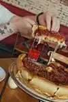 Not sure what all the hoopla is. 45 min wait for a deep dish pizza. Presentation looked good but it was pure cheese! We ordered half sausage, half pepperoni, they put it under the cheese, between the cheese layers. I honestly ripped it apart trying to eat it. I tried to pick at the crust but it just turned into a huge cheesy mess!