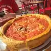 Slow/non existent service! First visit to this restaurant to try the “amazing” deep dish pizza and sadly it was disappointing!! Seated quickly and ordered the sampler which wasn’t too bad and we got 2 individual pizzas to try with toppings. The pizzas were ok, they did fall apart unlike the larger sizes. Our server was non existent, just took the order and disappeared for ages each time. I had to flag down someone to get a refill on a soda! It seemed if there was a larger table she was more interested in that to just us 2! Very disappointing experience I’ve had on my trip so far! Other servers seemed to be doing a great job we sadly got one who wasn’t bothered until the check was presented!