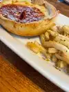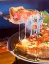 Delicious deep deep deep dish pizza. The cheese bread appie was also very good. The service was top-notch. Bruce made us feel like good friends who came over for dinner. Location is very convenient in the middle of the strip. Be sure to leave enough time to enjoy, it takes 45 minutes for the deep dish pies. We loved watching them twirl the dough above their heads.