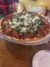 I love a good pizza. This was not the case. We arrived at the restaurant and were greeted by a friendly lady who immediately stated it would take 45 minutes to an hour for a deep dish pizza. It was 5 pm and the place wasn’t even busy. We agreed to the wait, I mean, if it’s worth it, why not? We ordered the mozzarella triangles which arrived quickly enough. Soggy dripping oil. Very salty. It took every little bit of 45 minutes for the pizza to arrive. The tomato sauce on top wasn’t even seasoned, tasted like it just came out of a jar of crushed tomatoes. But what was worse is that the layer of dough immediately underneath was completely raw. We ate half of the $40+ pie before giving up. We both had a stomach ache the same night and all through the day after. After 45 minutes wait, we were just expecting for the food to be cooked at least. Do not recommend.
