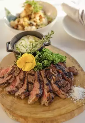Lovely setting, great service but food was extremely disappointing. Menu is limited especially if you can’t eat seafood. I don’t mind a small menu if everything is seasonal and well cooked but even the beef and chicken was dry and lacking flavor. The food arrived at the table on the cold side too which is not good.