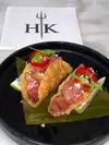 We chose Hells Kitchen for our one year anniversary. We walked in and were welcomed, escorted to our table and given a drinks and sushi menu. Soaking in the atmosphere you cannot help but notice a quantifying array of pitchforks. I asked a server how many they were but that will remain a mystery. We then met Caesar- a brilliant server for relaxed fine dining, clearly knowing his role inside out. I would describe him as attentive, cheerful, upbeat, helpful, and incredibly on the ball which led us feeling extremely relaxed and excited for the evening ahead. He initially let us get settled, and once we had chosen the wine he suggested some food. The wine we went for was a Sauvignon blanc 2022, in the Grgich Hills of Napa Valley, costing us $85, after checking vivino, it was only marked up $20. We also had complimentary bottled spring water from Tuscany. To start with we had octopus, tuna tartar, and the wagyu and pork meatballs. The octopus had been charred, accompanied with delicious sweet tomatoes and potatoes. As someone who doesn’t like seafood and has tried octopus before and haven’t been keen, I would’ve finished the plate. The tartar was flavoursome, beautiful, and fresh. The corn chips were salty to balance the flavour. The meatballs were the best meatballs I have ever eaten. The meat was incredibly tender and soft, and seasoned perfectly with herbs. The tomato sauce rich and deep in flavour. . We chatted and admired the kitchen, had are drinks topped up whilst waiting for our mains. Our glasses were never empty. Our servers were extremely attentive. They arrived, we both ordered the signature Wellington, with the potato puree, brussel sprouts and macaroni and cheese. The presentation of the Wellington was simple yet elegant. I just stared for a minute not knowing how to tackle it. I picked up my knife, pressed it lightly onto the Wellington and my jaw dropped in disbelief. The tenderness of the beef was just wow. I softly cut into my wellington with a smile on my face. I only managed half because of the richness, but that’s my problem, not the wellingtons. On the drive back I ate the other half like a pork pie and it was equally magnificent. Sprouts were very rich and crunchy, I couldn’t have sat there and smashed through a bowl of it. The mac and cheese was slightly underwhelming. It wasn’t ’knock your socks off that’s good Mac and cheese.’ The potato puree was creamy, elegant and yum. The stars of the show were the Wellington and the starters. Caesar kindly took an anniversary picture of us, gave us the bill ensuring there is no rush to leave. We left just before 10 after an amazing 2 hour dining experience, and had a walk in the local area - a lovely part of downtown Miami.