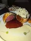 We had the beef wellington, different starters, but the fact remains that everything is cold. The cooking of the scallops was only on one side however the lobster risotto was good but cold The plate of cold beef wellington, I don't know how long it was ready but we ate it all cold. Sticky toffee pudding dessert; simple it is 100 times better in England. I had a coffee and it was very strong, I had to add 4 sugars and to finish, the bill was steep. You pay for the name more than for the quality. The service is 5 out of 5 and the cooking of the food 5 out of 5. tip is included in the bill and it is 20%. I will not return.