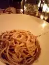 I had researched ahead of my weekend in NYC for the best pasta carbonara. Gradisca received high praises, so I put it on my list. I wasn't sure how my day was going to unfold and didn't want to make reservations ahead of time. Shortly after 8pm, I decided to make a reservation for that night. Being a solo traveler, I had no problem getting a reservation for 9:15. I arrived at the restaurant on-time and was immediately shown two options for seating. I chose a small, corner table in their dining room (as opposed to the bar area). The restaurant was very full and other patrons were clearly enjoying their meal. My waiter was attentive and very pleasant. I chose the beef carpaccio for my starter and the carbonara as a main. I was served bread and delicious marinated olives while I waited. The carpaccio was very good; topped with arugula and a truffle sauce. Perfect for a light starter. The carbonara was phenomenal! Even better than what I've had in Italy! The noodles were coated lightly in the egg and cheese, not dry at all. The flavor was perfect and I didn't need to add salt or pepper (which is odd for me!). The portion doesn't look very big due to the type of plate they use, but it was a very good sized amount of pasta. I was full but the food was so good I couldn't leave a bite left on the plate. Next time I'll skip the starter so I don't get full so quickly. From now on, every other carbonara will be measured against this one. I can't wait until my next trip to NYC to visit again. There are quite a few dishes on the menu I'd like to try, but I'll never stray from the carbonara. Next time I'll have to visit with a friend so I can try their meal and still have my own!
