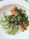 Amazing Ambiance: You really can't get much better than this. It's on a stunning wooden boat, strings of lights, and an unbeatable view. Small Portions: I really can't stress this enough!! The portions are so small you almost need to order 2 or 3 of some of their dishes. This is really more of an after dinner snacks and cocktail place. Do not come hungry!! Overpriced: I ordered the Ceviche (pictured), it was SO delicious, amazing flavor! But it was $16, and that was the entire thing. Bad Service: I made a reservation for 8:45 and we weren't seated until closer to 9:10. Our pre dinner oysters came a solid 20 minutes after dinner. When we were literally looking around wanting to pay the bill and leave (the restaurant was empty and closing at his point) our waitress forgot about us. I'd take off more stars but the ambiance really won me over. I'd come back for the atmosphere alone, but I definitely won't come hungry!