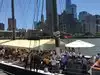 Went for lunch here on Saturday around 1 pm with my brother Gene and my dog Fiona. We got a table right away, and ordered a bottle of Rose. The views of the Statute of Liberty and New Jersey skyline were quite stunning. Also, enjoyed viewing a sailboat race happening. The wait staff were wonderful, and we ordered oysters, lobster rolls and an order of truffle infused French fries. Most attractive group of people, got more crowded as day wore on. Everything we ordered was delicious, topping our lunch off with a shared chocolate mousse. Truly a sublime time was had by all (including Fiona who ate many fries) So much fun to be aboard a sailboat on a beautiful day without leaving town