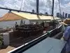 My wife and I arrived around 430pm on a Friday afternoon, as we approached the vessel, there was a small line to go on board. Many of the clientele were from the financial institutions down in Lower Manhattan. We got to sit at the make shift bar towards the stern, though it was a little cramped, it was away from those standing at the main bar. Though they seemed to have a full bar, you can only order cocktails from their menu, i.e. wanted a Dark & Stormy, but didn't have the ingredients, strange. Settled with their draft beer, while my wife had something similar to a Pim's Cup. The weather was rough as the Hudson River was showing rough seas in the harbor, so we all swayed back n forth during our time. Thought the sun was out and quite warm, it was a ice change from the past weeks weather. We shared several kinds of oysters and their version of a ceviche', though tasty, was quite a small portion. Our Server cannot remember his name thanked us for visiting and told us he enjoyed serving us. Which I felt was nice to hear, coming from working in the hospitality business myself. So if you go, go early enough to beat the crowds and take your Dramamine.