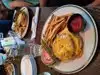 Beautiful outside brunch! Highly recommended! Great variety of very moderate priced meal choices. Delightful staff. Cool breeze and part shade on patio. Food was terrific portions, very fresh and deliciously and beautifully prepared.