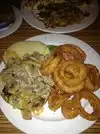 Ordered the wiener schnitzel and the meat was a nice large size, but it had no taste, was bone dry, and was encased in a thick bland crust. Alongside was a tiny portion of potato salad featuring two barely cooked through lumps of potato. Also served were tasty slices of baby cucumber.