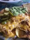 This restaurant was a block from our hotel, and decided to try it for lunch. I noticed there were a couple of larger parties of 5 - 6 people, and a few tables of 2 here and there. There appeared to be 1 waiter and a couple of good runners?? Seem to be under control, until after we ordered. The Supernachos arrived on a small oval shaped player that had chips, cheese, scoop of guac and sour cream and THATS IT! Super disappointing! The waiter seemed to have this wise guy schitck, that was kinda funny, but wore off after the first couple of jokes. Odd.. If you're looking for a reasonably priced lunch and don't mind waiting for A While to get your food, check this place out. Otherwise walk the extra few blocks and get a great meal in a nice restaurant. ( Don't order the supernachos! )